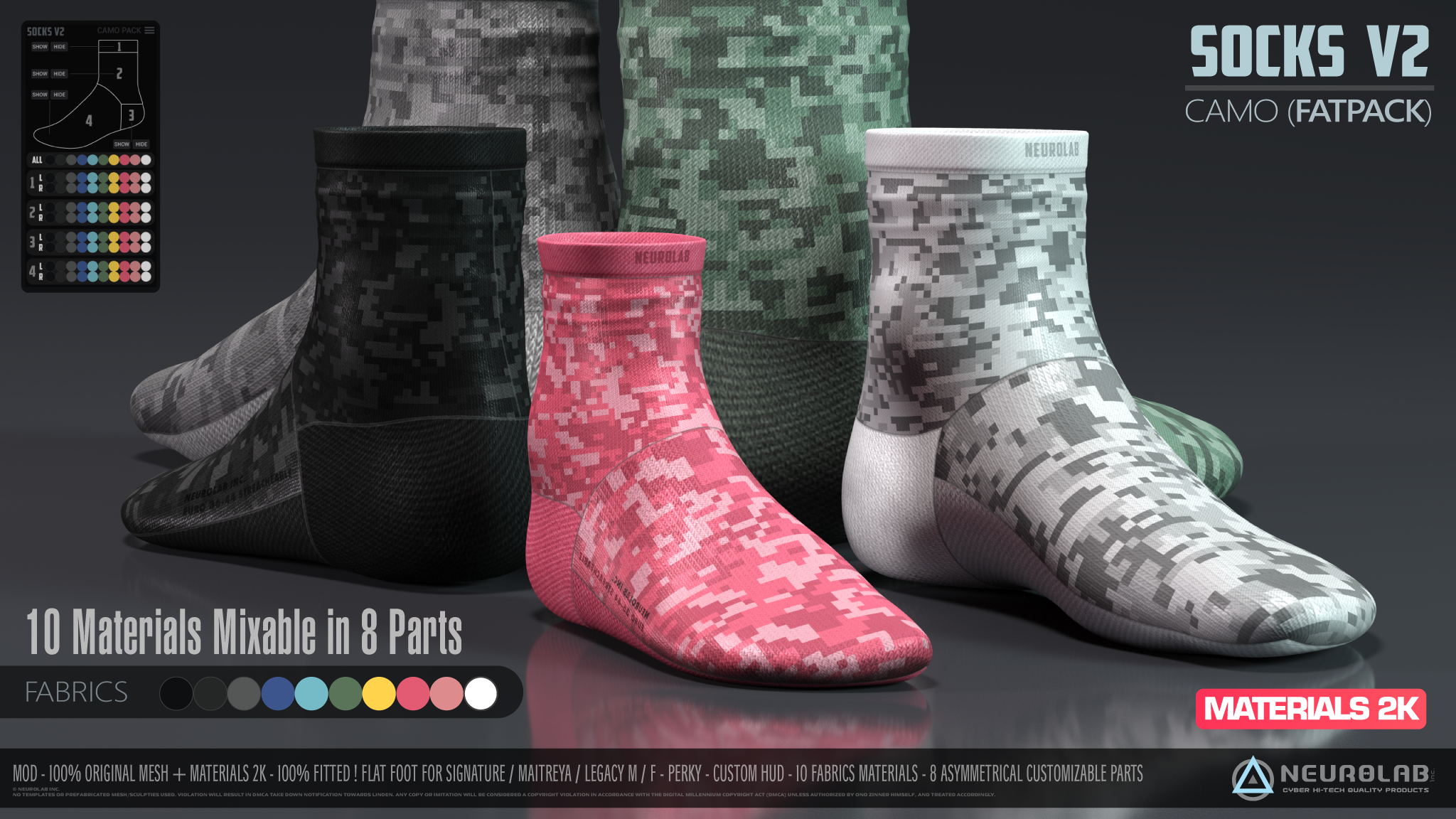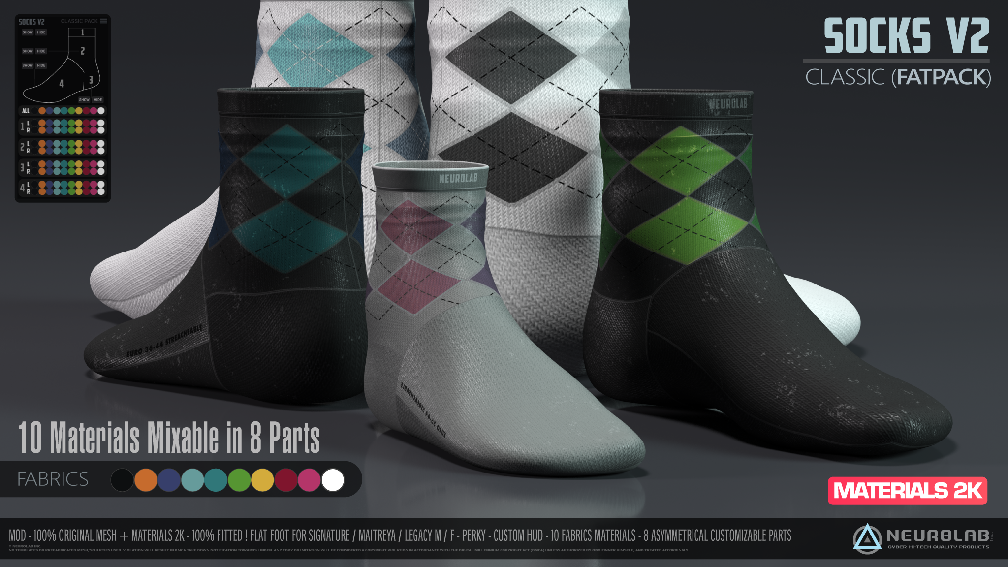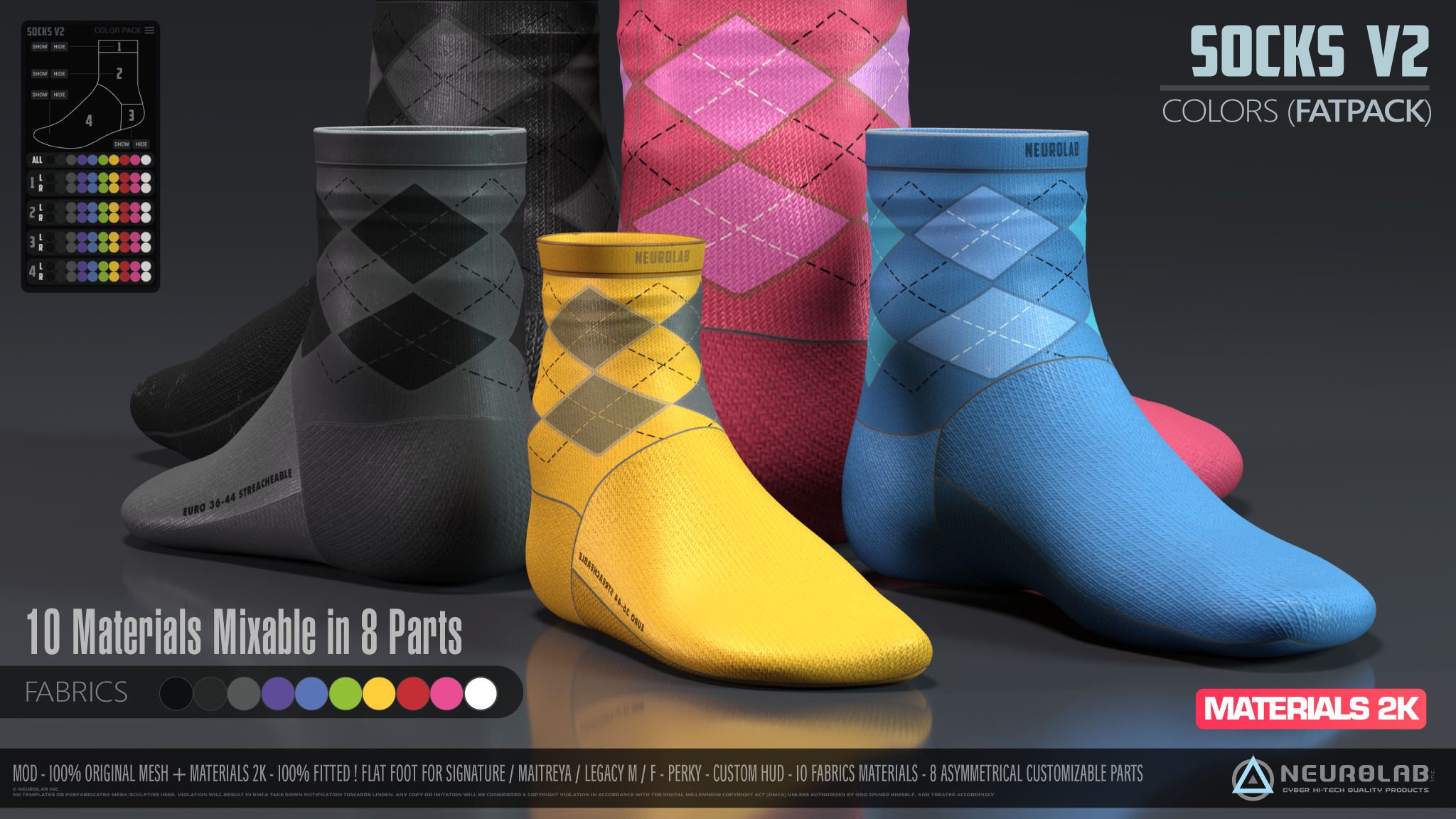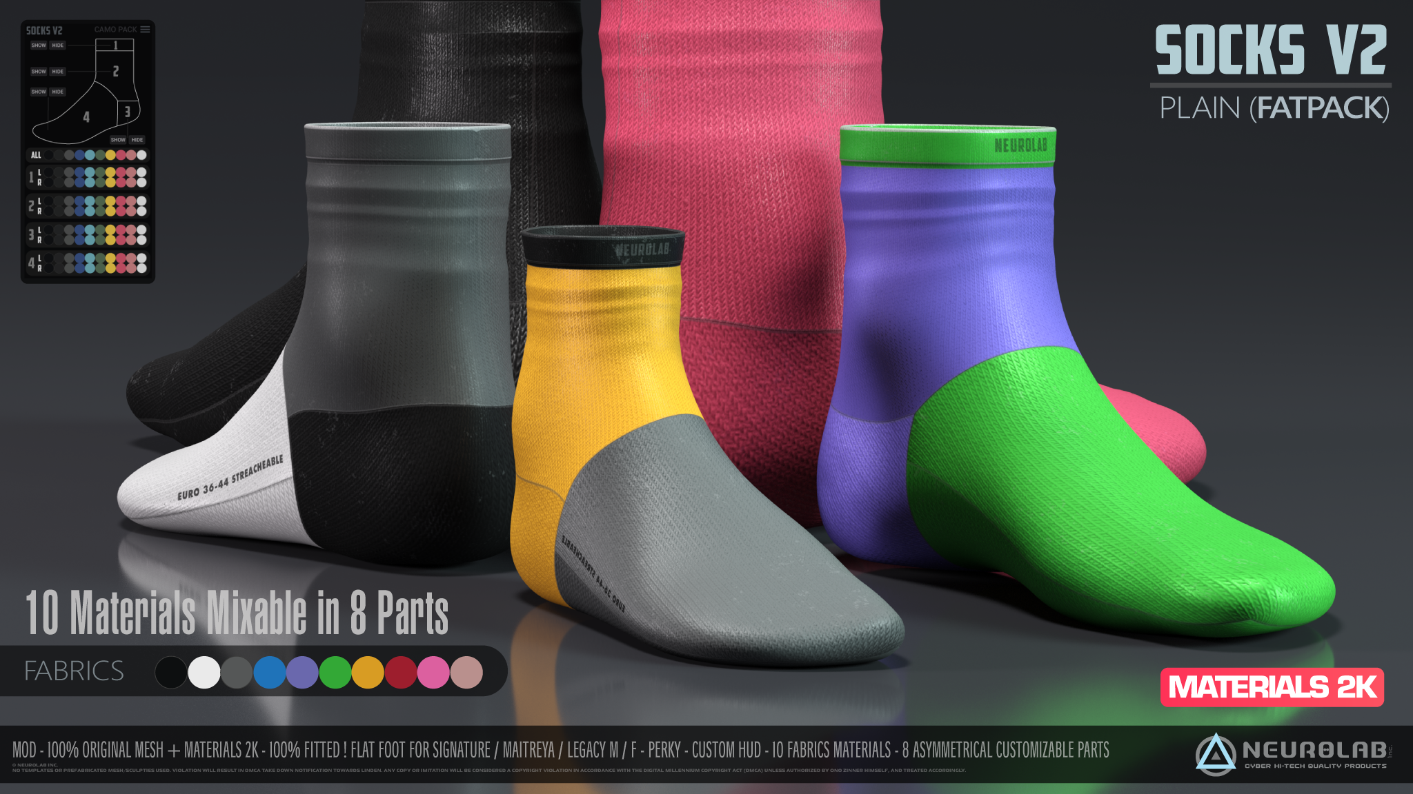 The Neurolab Socks Collection is meticulously crafted with attention to detail and quality. The socks are 100% fitted, providing a comfortable and realistic fit for your avatar. Each pair is made with precision and care, ensuring they enhance your virtual fashion experience.