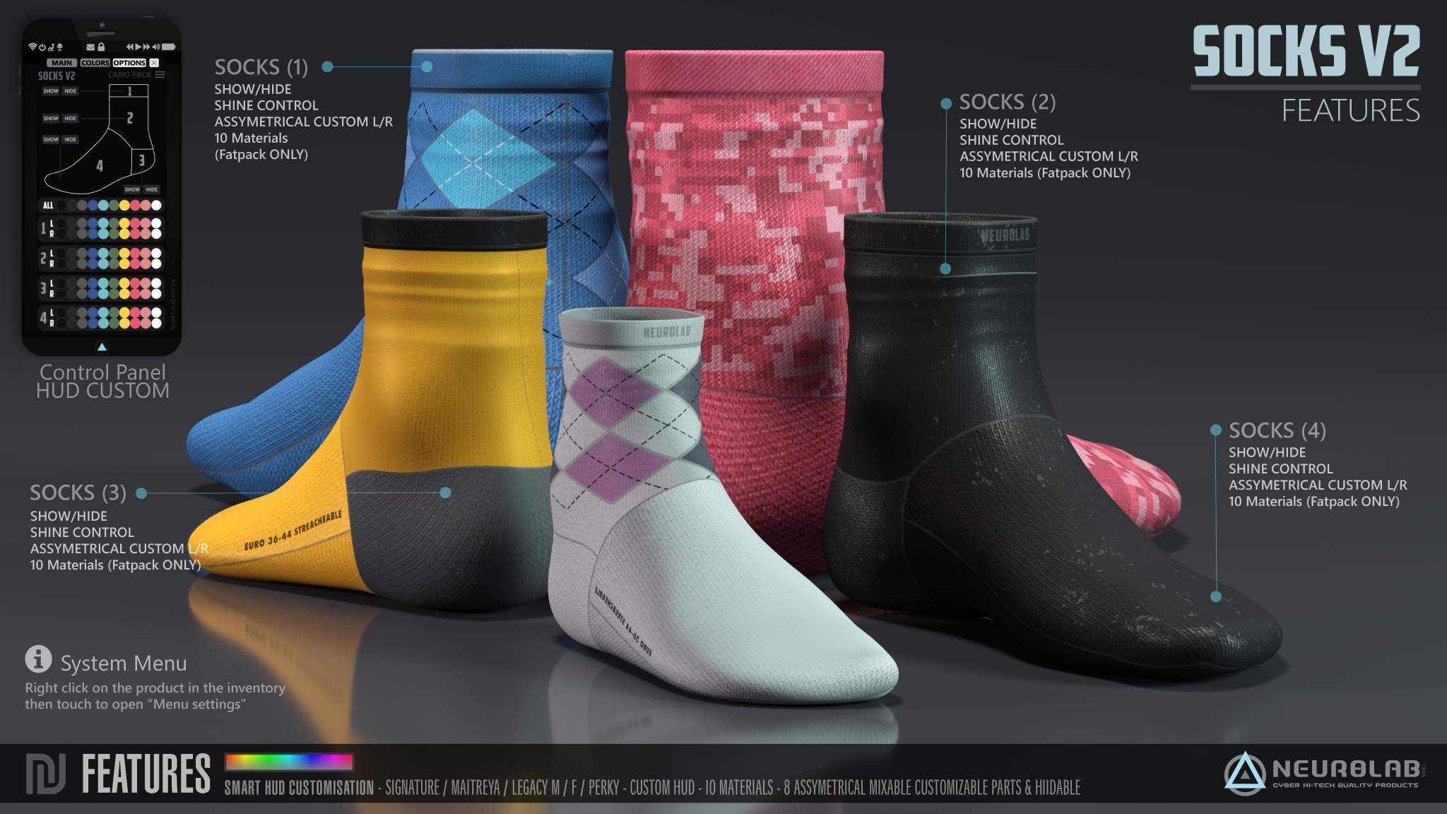 Elevate your virtual style with the Neurolab Socks Collection. Embrace the customization options, material choices, and compatibility with our footwear range. Step into a new level of fashion with the perfect pair of socks from Neurolab.