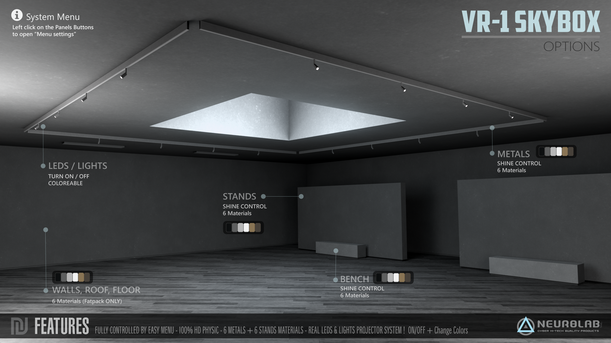 Introducing the VR-1 SKYBOX from Neurolab, a truly exceptional creation designed to cater to a wide range of applications, including small stores, offices, galleries, and more, meeting diverse objectives. Crafted with utmost attention to detail, this product boasts 100% High-Quality Luxury Mesh, providing an ultra-realistic appearance with impressive materials 2K + PBR Versions that elevate your virtual environment to new heights.