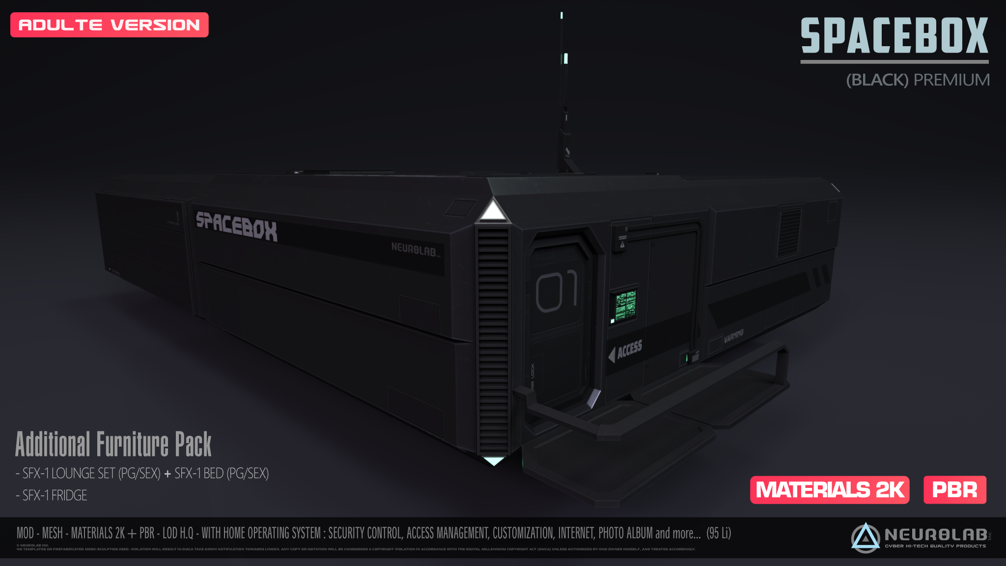Experience the highest quality with our 100% mesh and materials 2K + PBR Version, ensuring a luxurious and ultra-realistic appearance. The SPACEBOX is designed to impress, providing a visually stunning and immersive living environment.