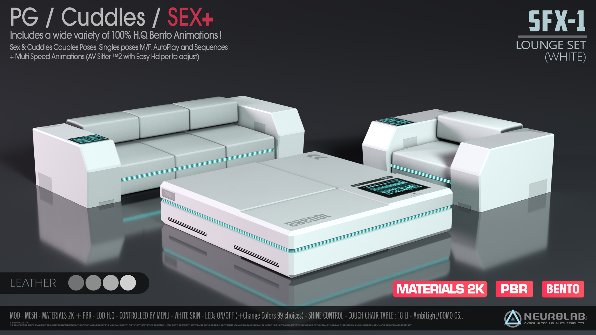 – SPACEBOX Premium + Pack SFX-1 PG/Mature ( Furnitures Fridge, Couch and Bed). ** (Save L$2000, Separately Real price: L$11.060) **