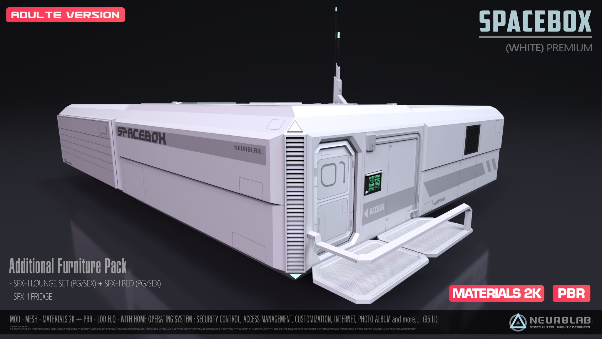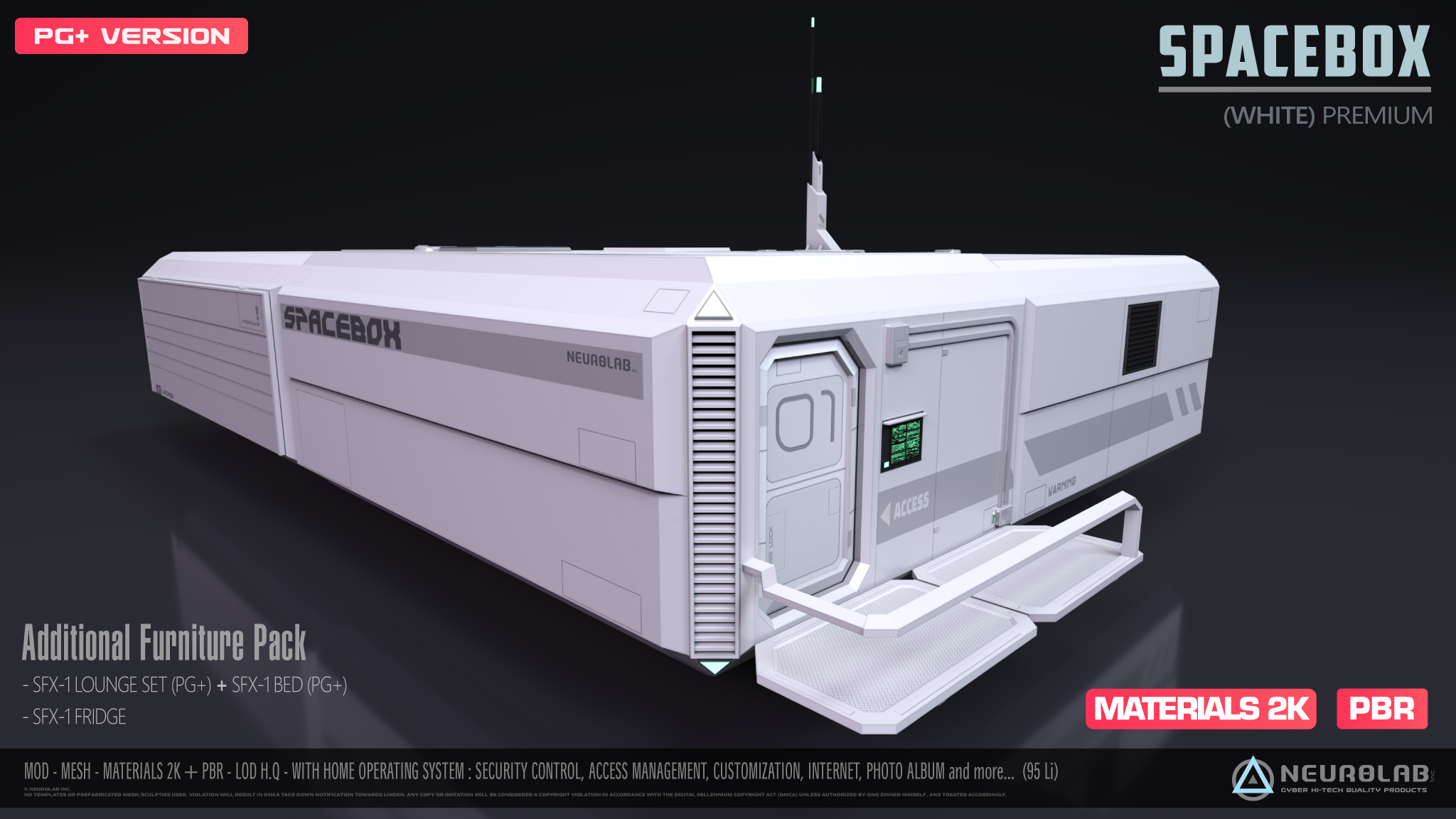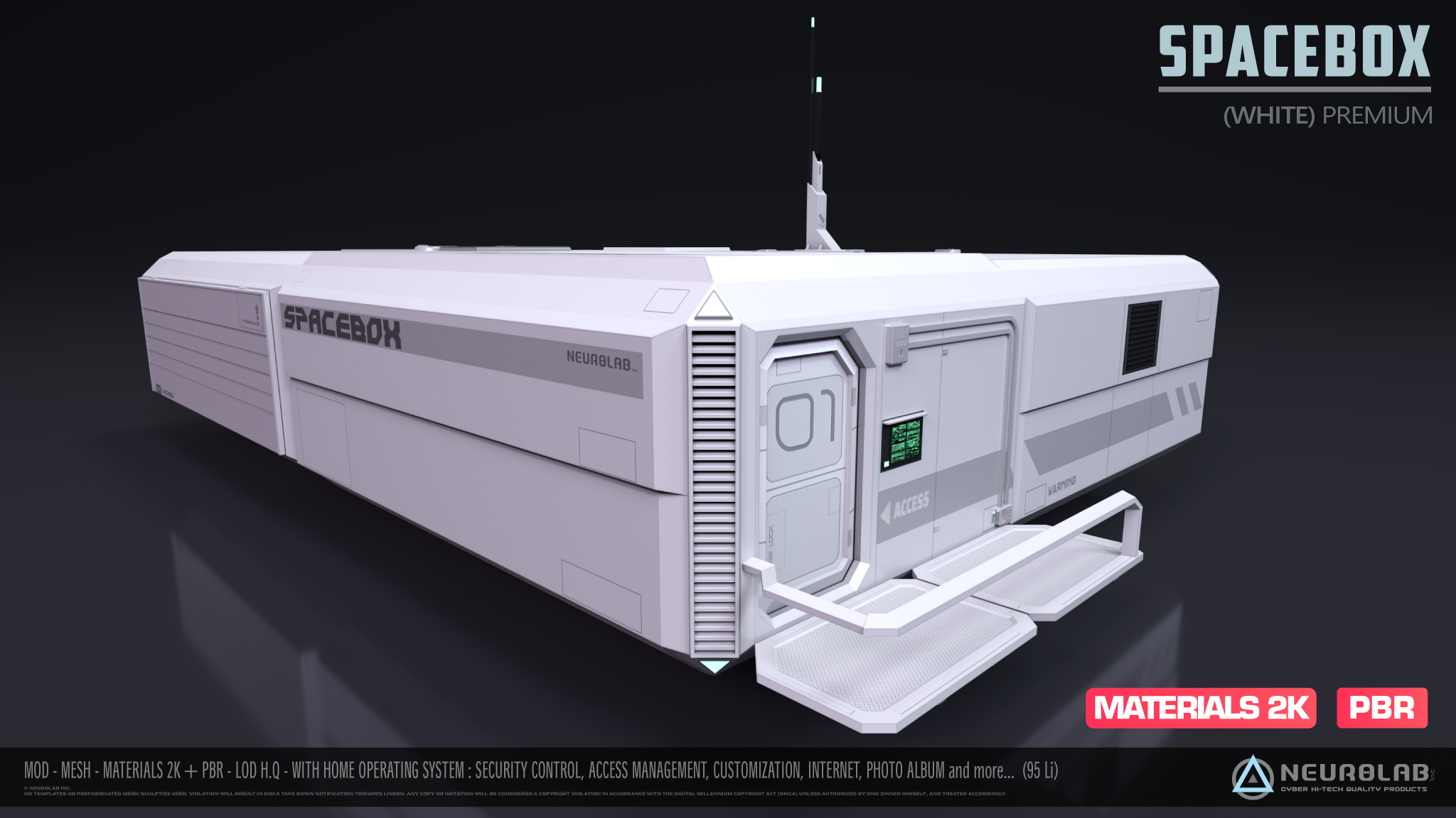 Experience the highest quality with our 100% mesh and materials 2K + PBR Version, ensuring a luxurious and ultra-realistic appearance. The SPACEBOX is designed to impress, providing a visually stunning and immersive living environment.