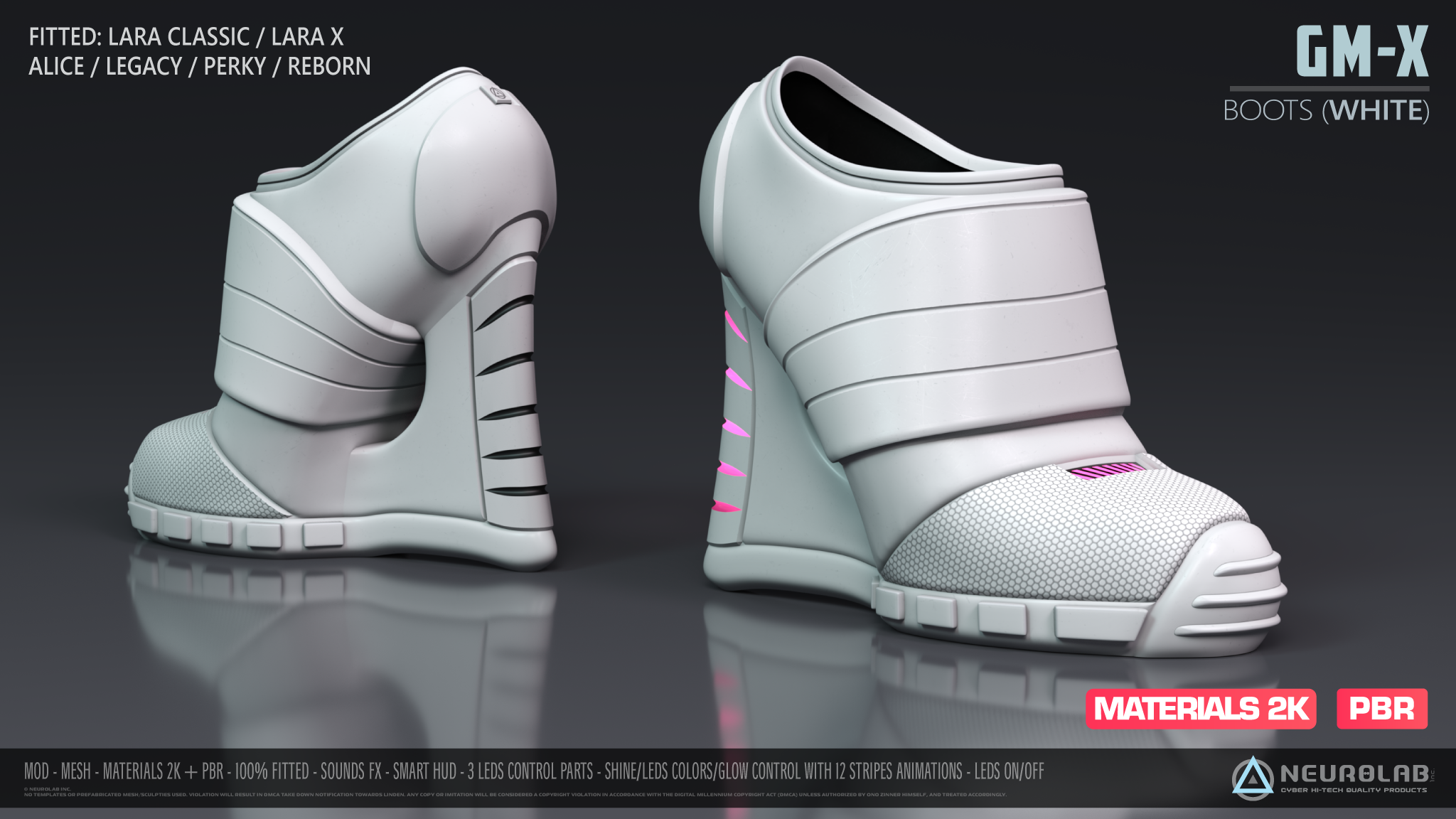 Neurolab is thrilled to unveil the cutting-edge GM-X Futuristic Sexy Boots. Crafted with meticulous attention to detail, these 100% Mesh boots boast highly realistic features and materials 2K + PBR versions, creating a truly immersive experience.