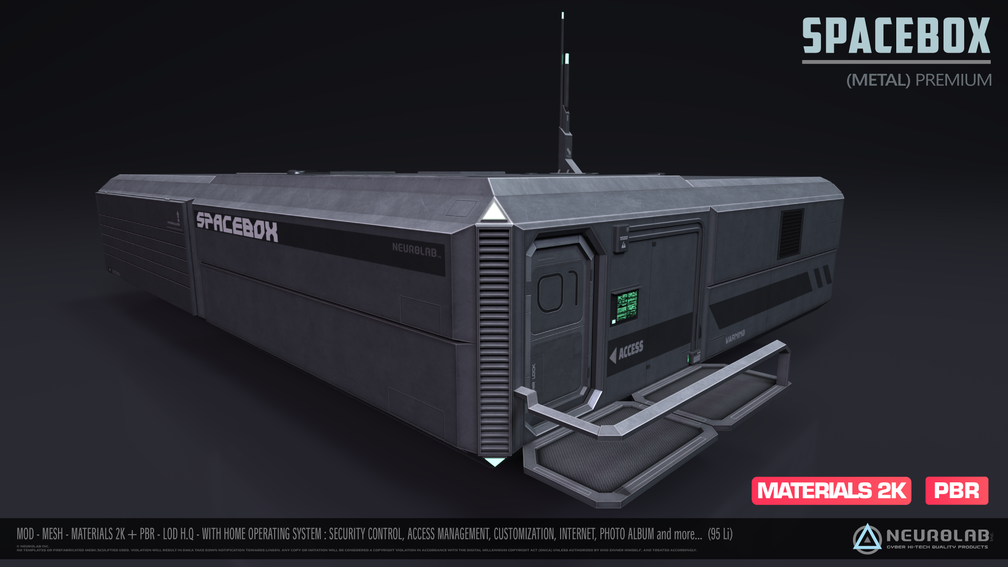 Experience the highest quality with our 100% mesh and materials 2K + PBR Version, ensuring a luxurious and ultra-realistic appearance. The SPACEBOX is designed to impress, providing a visually stunning and immersive living environment.
