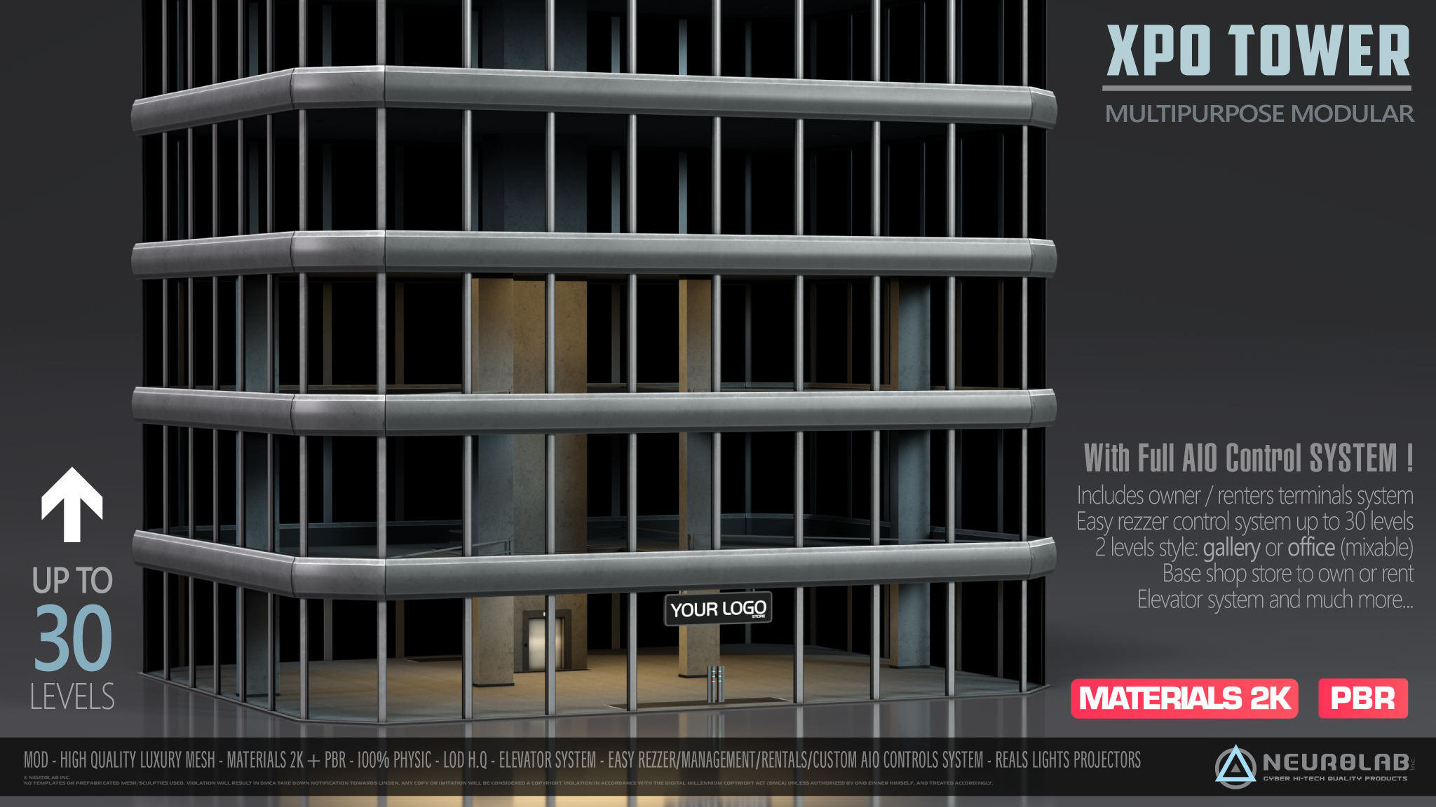 Integrated Easy Rezzer + Control System: Effortlessly manage your tower by rezzing or derezzing it with a single click while preserving tenant data. Choose between two distinct level styles—gallery or office—and even mix them to suit your unique requirements.